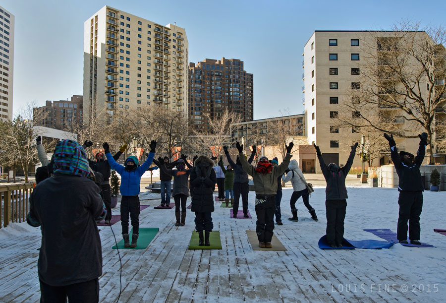 Minneapolis, MN - February 22, 2015 - Snoga in progress near Northrop Mall. The event would later be disbanded early due to cold weather. Photo